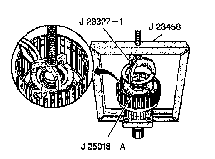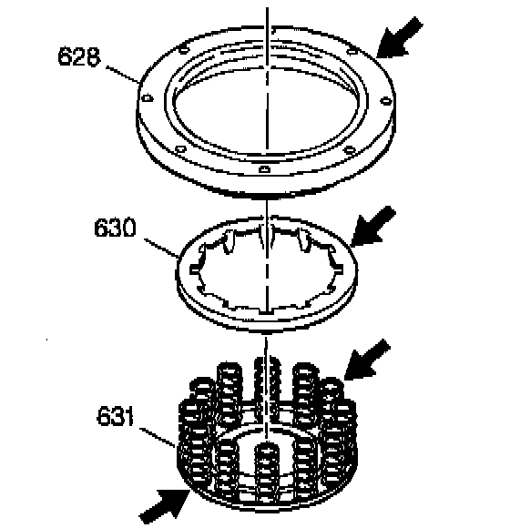 8. Inspect the retainer and spring assembly (631) for collapsed springs or for a bent retainer.