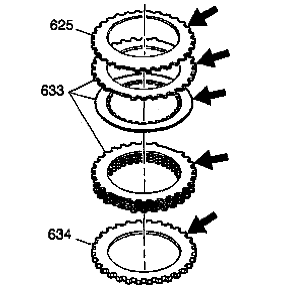 11. Inspect the forward clutch backing plate (634) for damage or cracks.