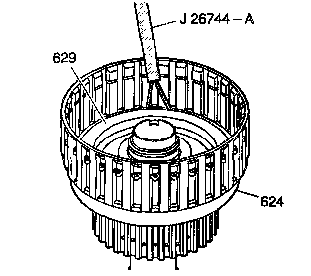 15. Use J 26744-A and TRANSJEL(R) or equivalent in order to insert the forward clutch piston (639) into the forward clutch housing (624). Insert the inner seal first.