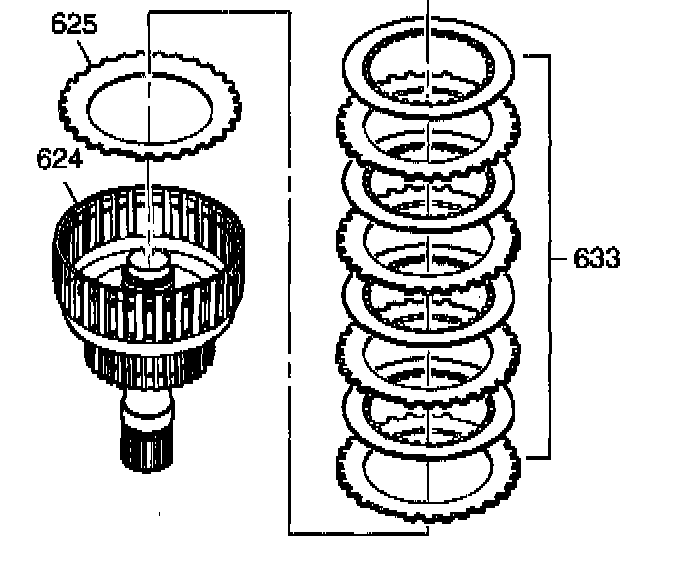 21. Insert the clutch plates (633) into the housing, starting with a steel plate and alternating with a composition plate.