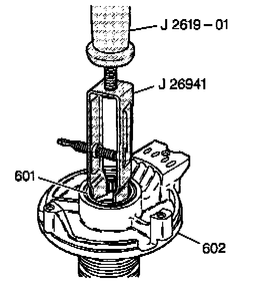 Use J 2619-01 and J 26941 in order to remove the driven sprocket support bearing (601).