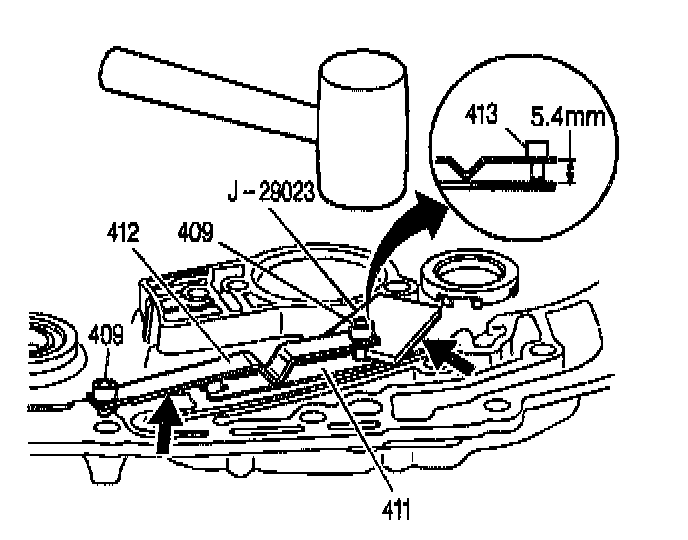 10. Use a hammer in order to set the height of the thermo element spring pin (409). Set the height of the pin to 5.4 mm (0.213 inch).