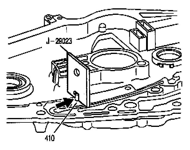 9. Lay J 29023 on its side between the thermo element (411) and the case cover (401) so that you can check the height of the thermo element spring pin (409).