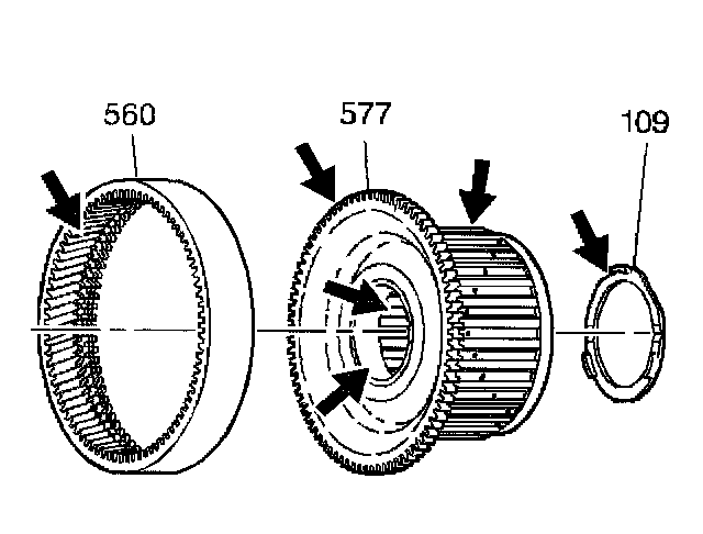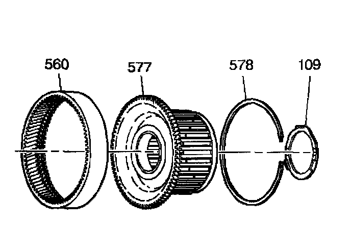 3. Remove the forward clutch hub (577) from the input internal gear (560).