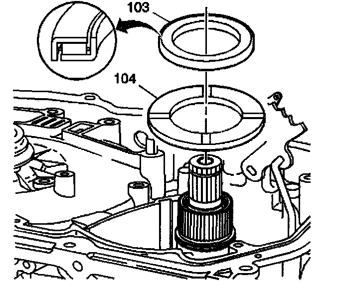 5. Assemble the thrust bearing (103) over the input shaft and onto the top of the selective thrust washer (104).