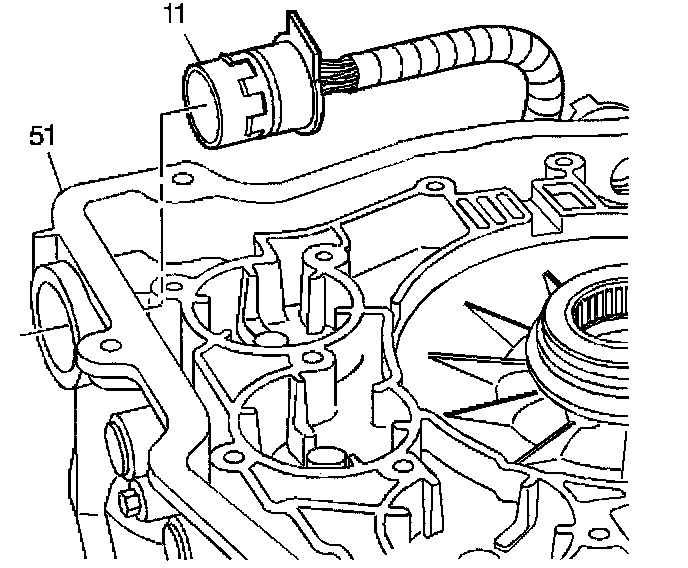 3. Assemble the wiring harness pass thru connector into the transaxle case bore from the inside of the transaxle case.