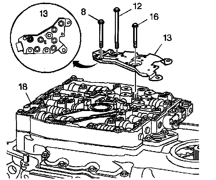 5. Install the TFP switch assembly (13) onto the control valve body assembly.