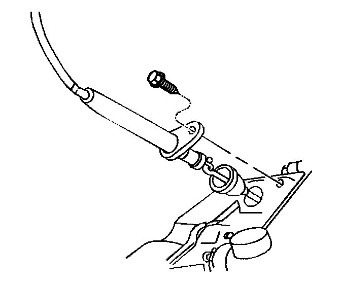 4. Remove the bolt that is securing the TV cable to the transmission. Pull up on the cable cover at the transmission until the cable is visible.