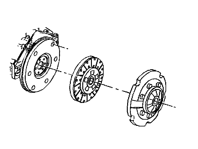 The pressure of a diaphragm spring in the clutch cover assembly holds the clutch disc in contact between the flywheel and the clutch cover assembly.