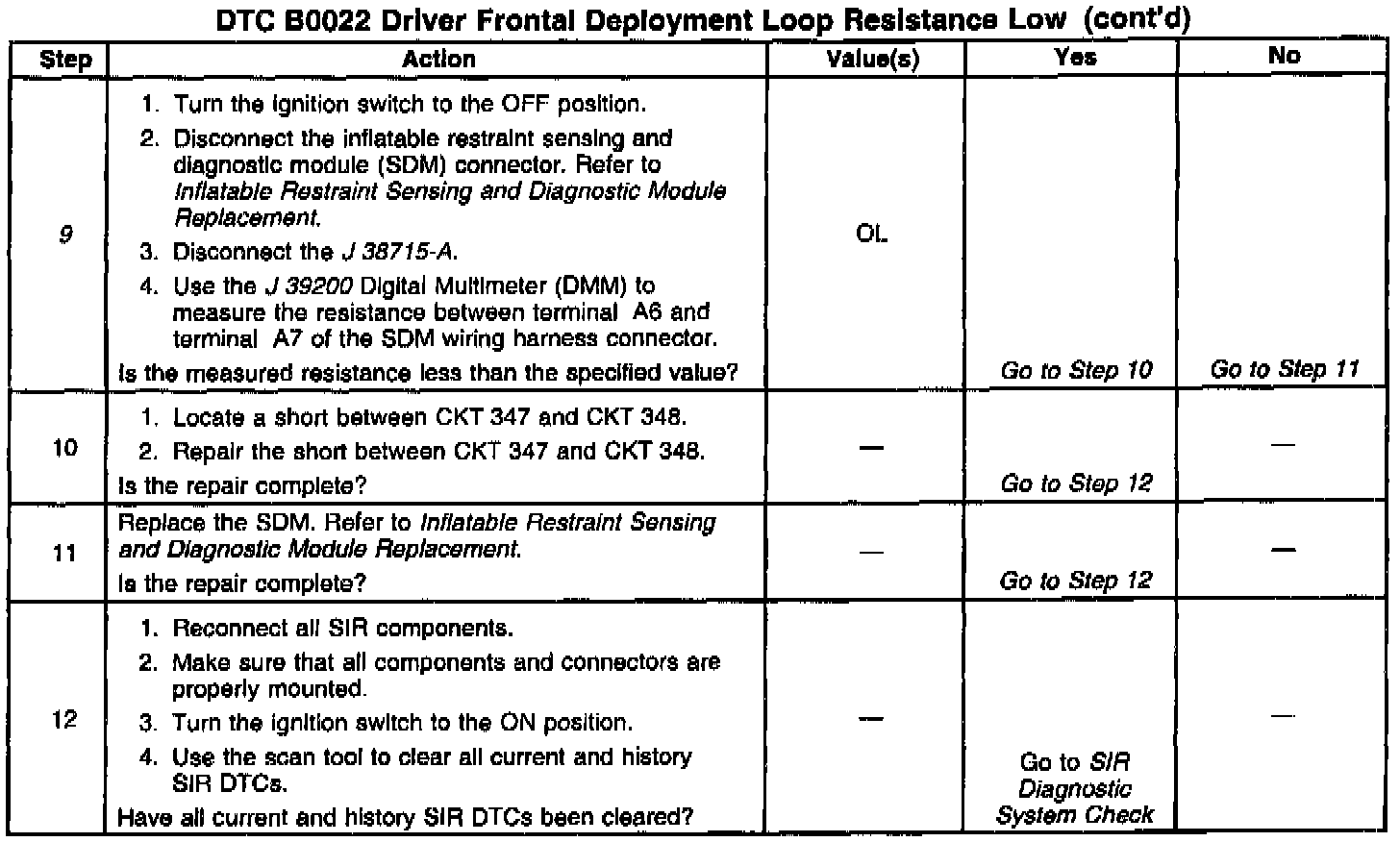 9. This step determines if there is a short between circuit 347 and circuit 348 or if there is a malfunctioning SDM.