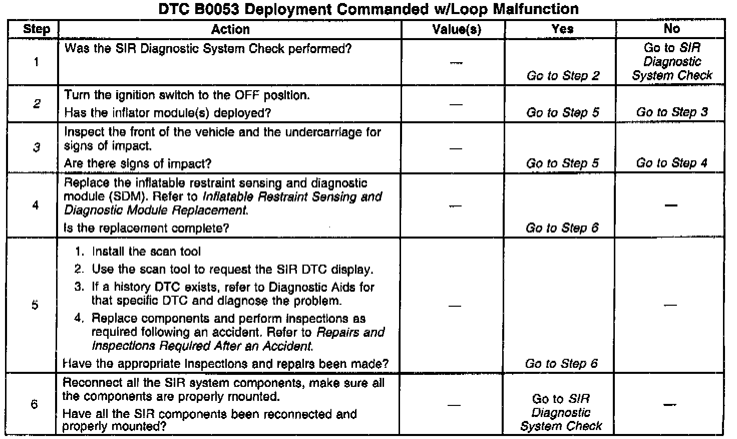 2. If the inflator module(s) has not deployed, DTC B0053 may have set falsely.
