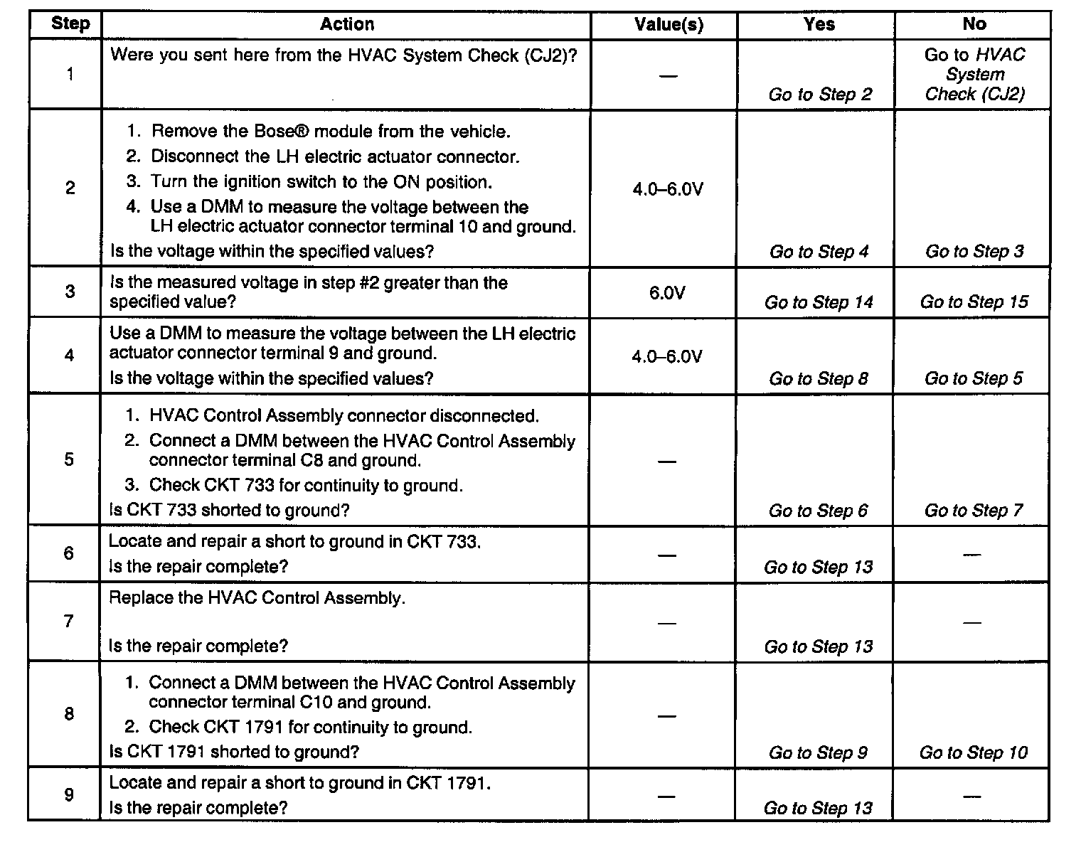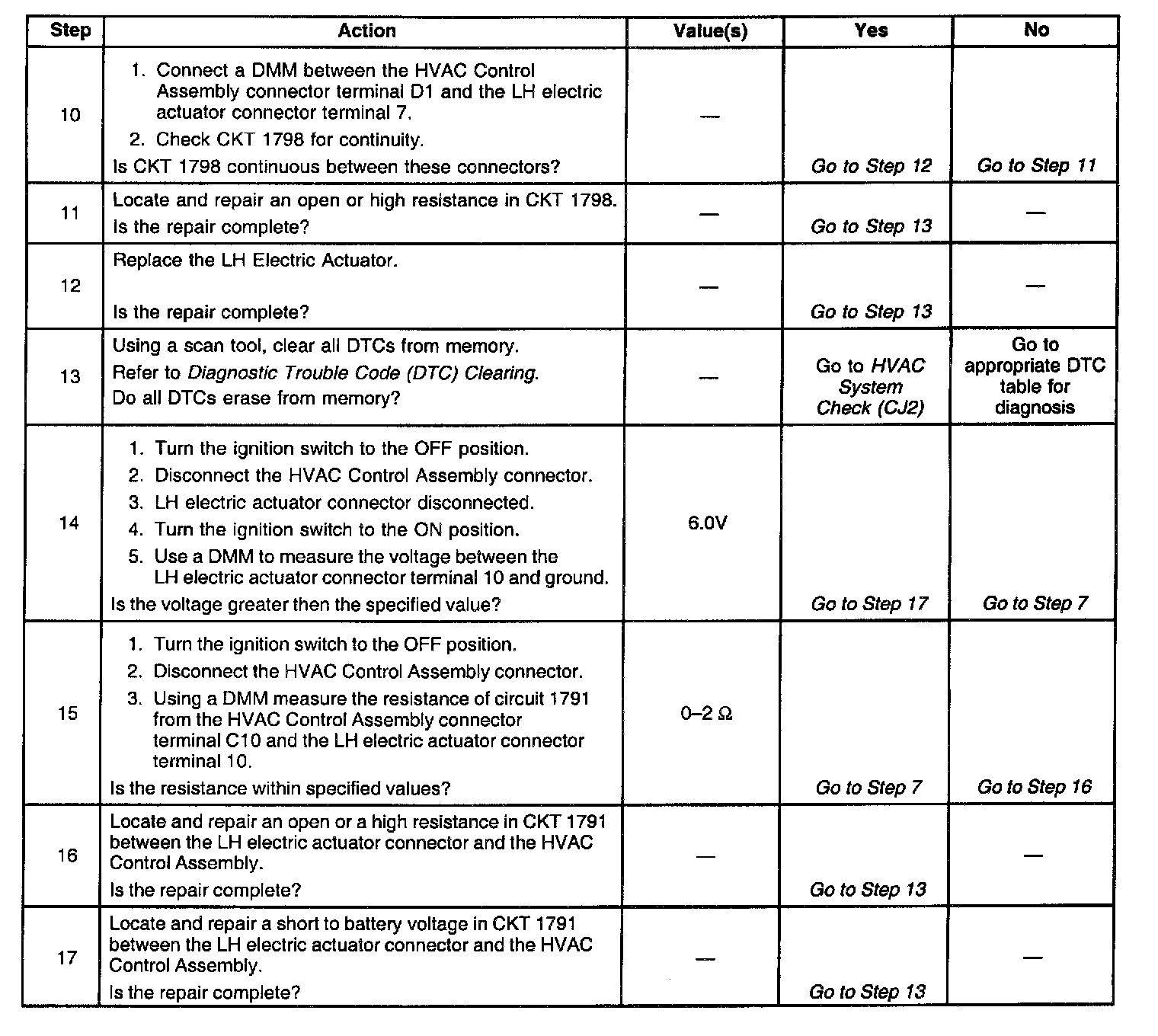 14. This step is determining if a short to battery voltage exists on CKT 1791 with the HVAC control head and the LH electric actuator disconnected.