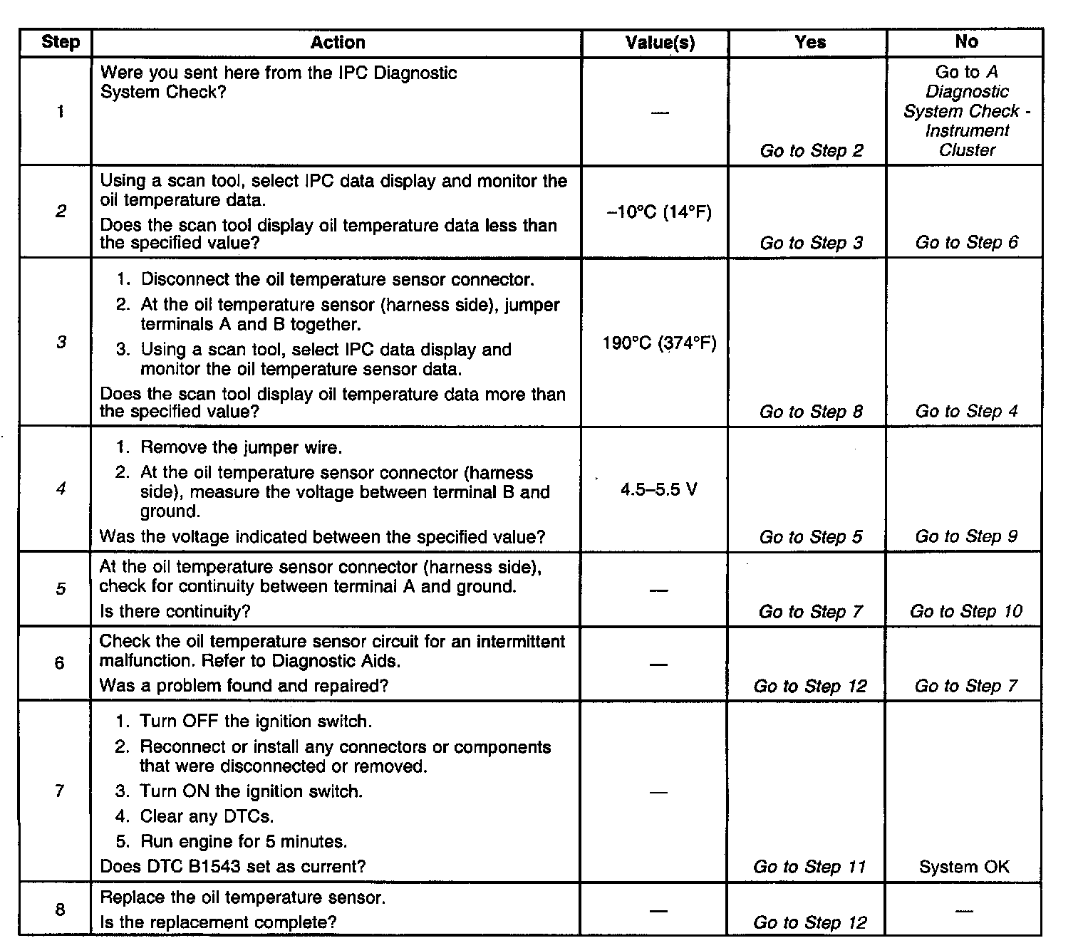 DTC B1543 Oil Temperature Circuit Open (Part 2 Of 2):