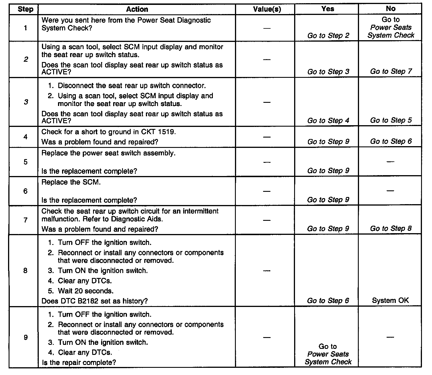 DTC B2182 Seat Rear Up Switch Shorted To Ground: