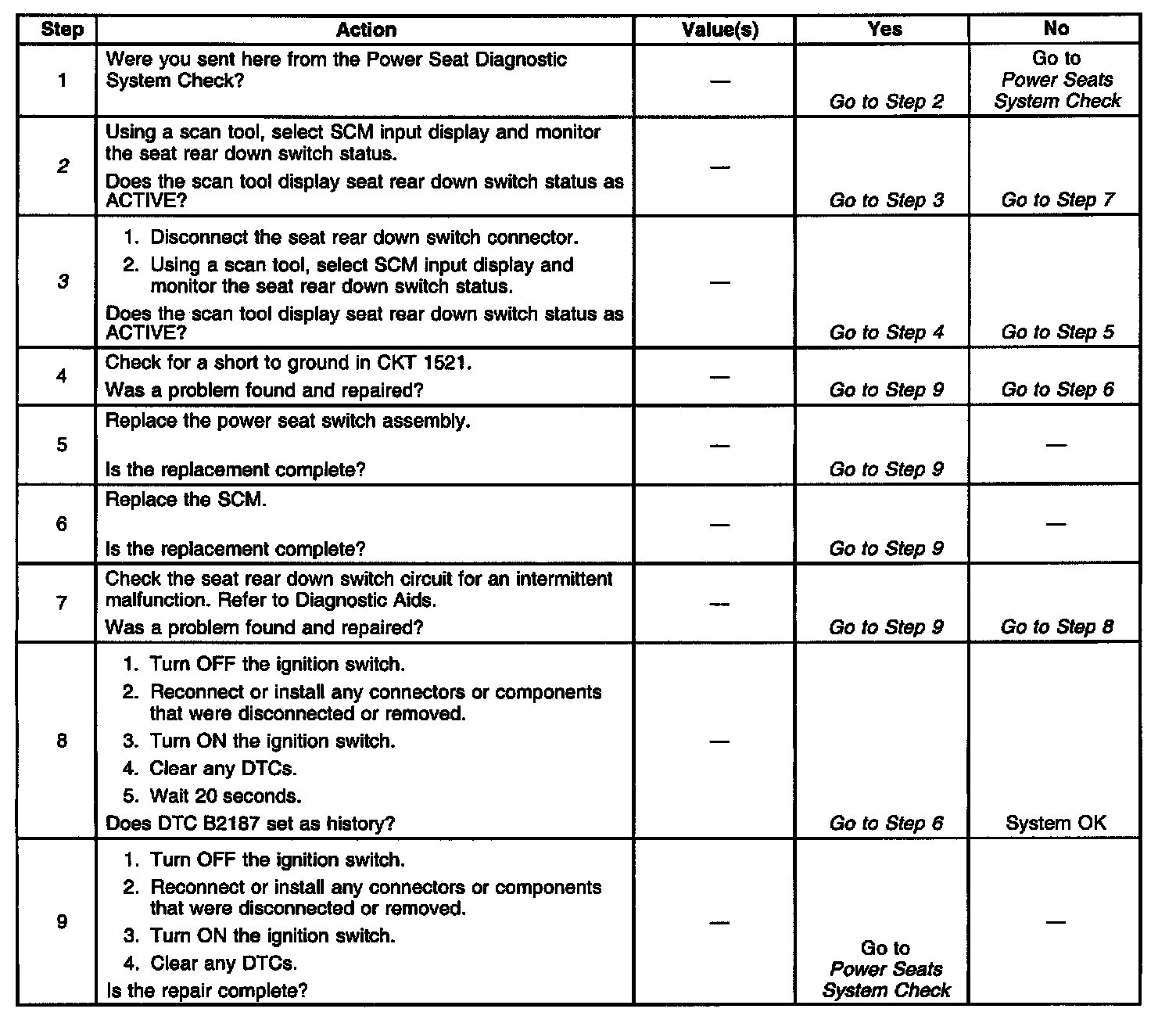 DTC B2187 Seat Rear Down Switch Shorted To Ground: