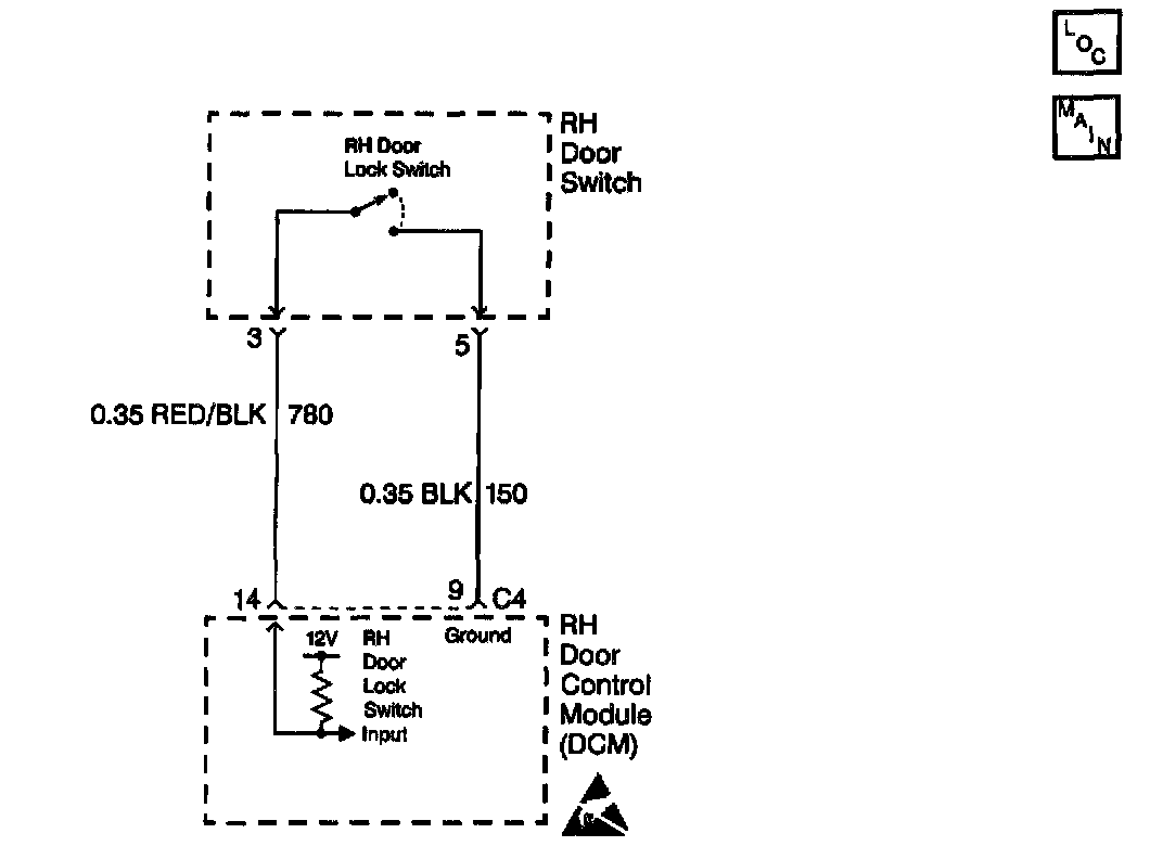 - The RH door lock switch is shorted to ground internally or is sticking.