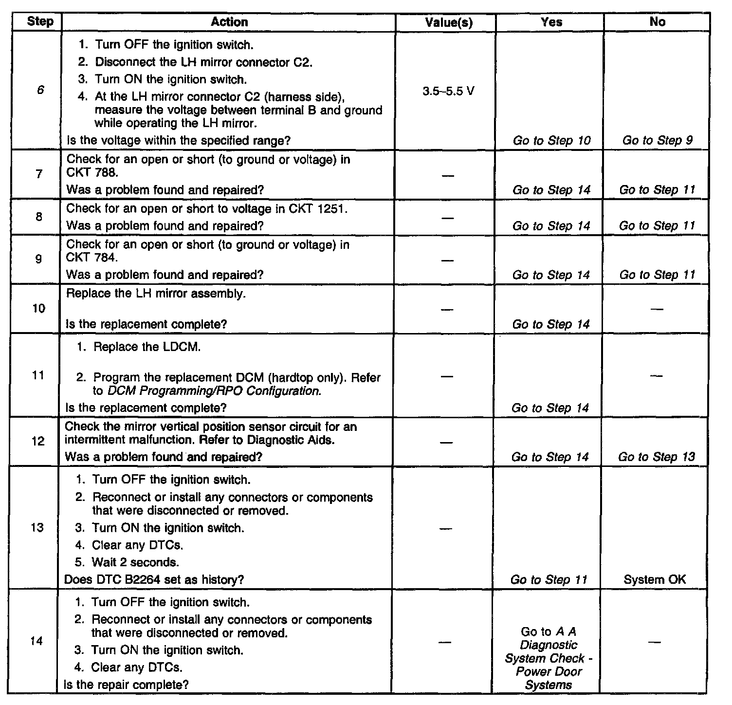 ^ The LDCM detects the correct LH mirror vertical position sensor signal voltage range (0.1-4.78 volts) for longer than 2 seconds.