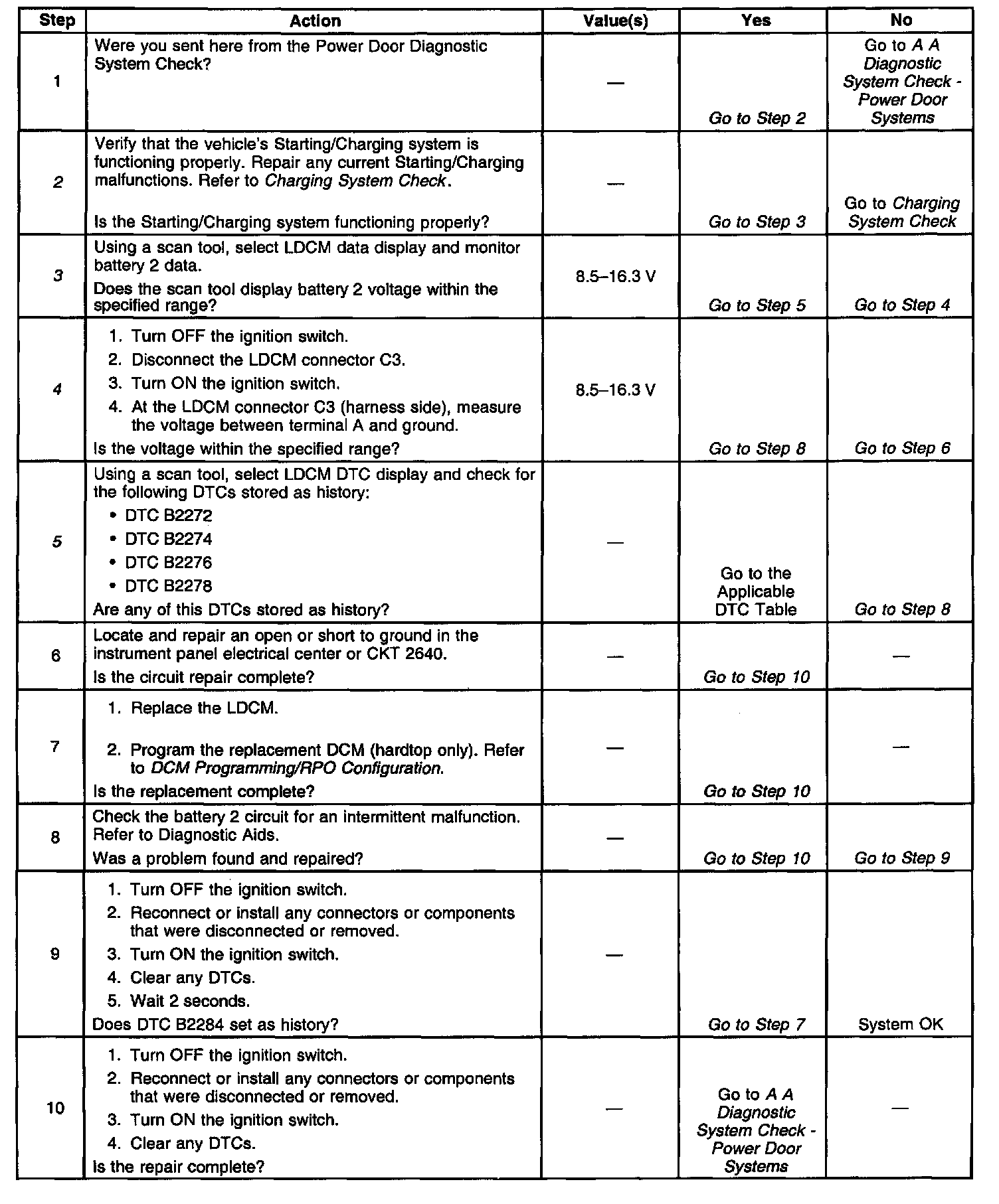 2. This test checks if the vehicle's Starting/Charging system is functioning properly. Starting/Charging system malfunctions will cause the LDCM to store a history DTC B2284, therefore always repair all Starting/Charging malfunctions first.