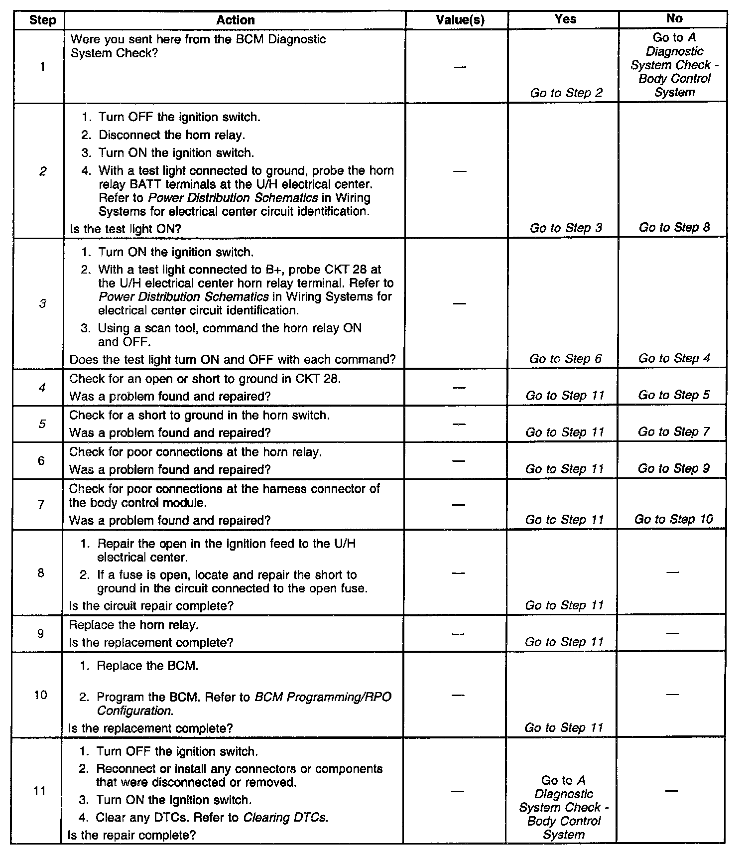 ^ The BCM can only test for this condition with the horn relay de-energized.