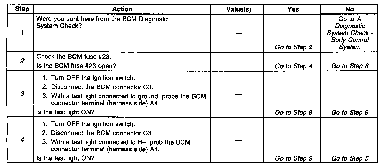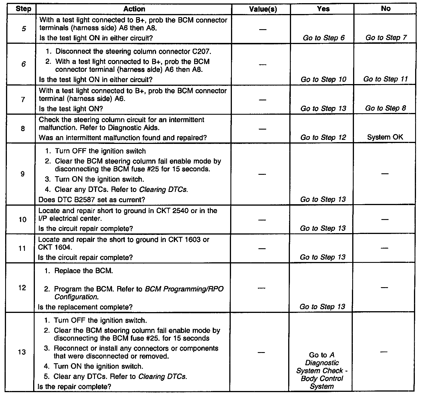 ^ A short to ground in CKT 2540 will cause BCM fuse #23 to open. The BCM receives supply voltage for the steering column lock motor through CKT 2540. If the BCM is unable to supply voltage to the steering column lock motor through CKT 2540, the BCM will set a DTC B2587.