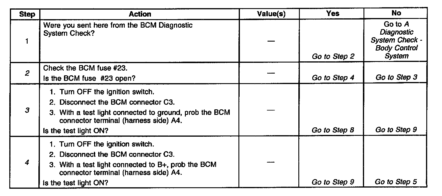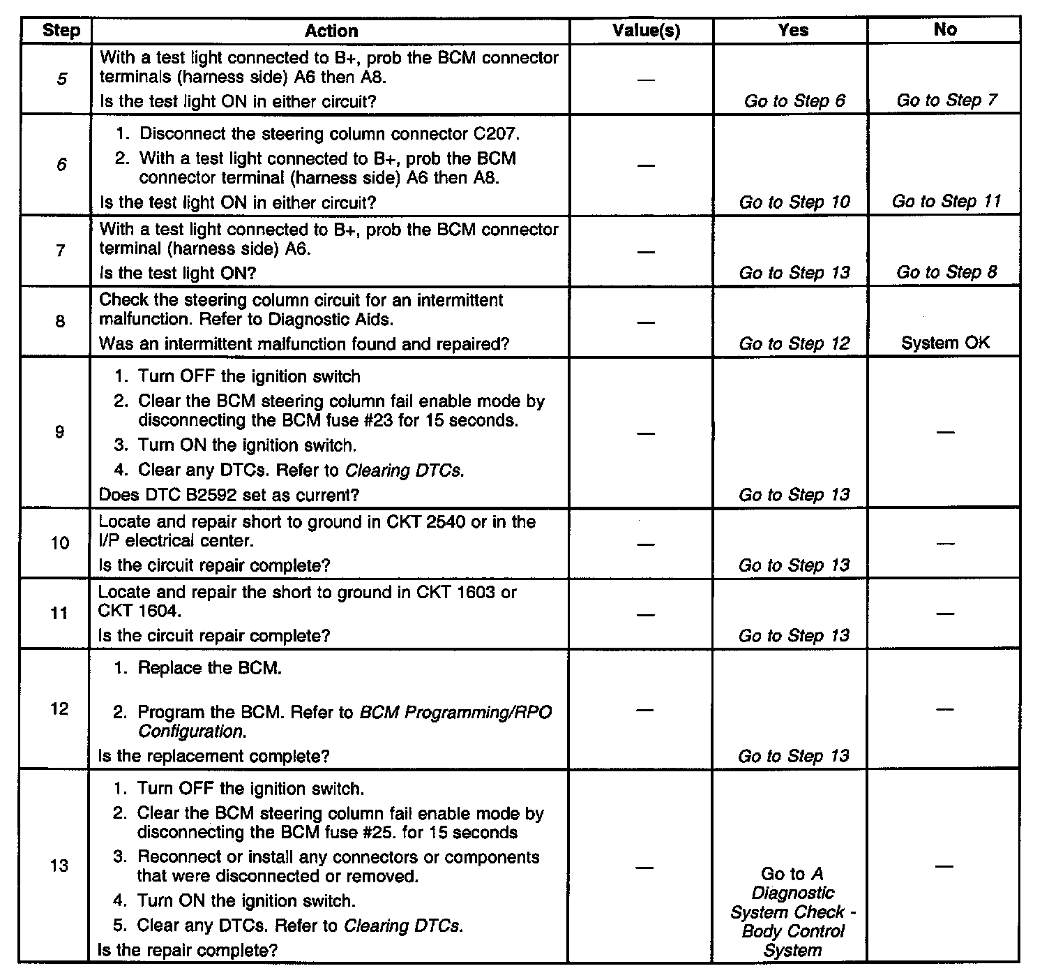 ^ A short to ground in CKT 2540 will cause BCM fuse #23 to open. The BCM receives supply voltage for steering column lock motor through CKT 2540. If the BCM is unable to supply voltage to the steering column lock motor through CKT 2540, the BCM will set a DTC B2592.
