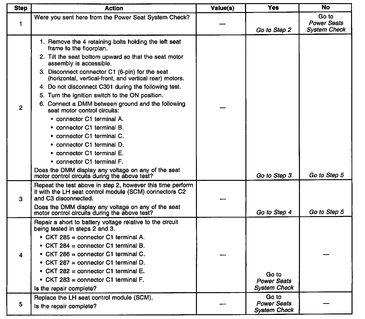 ^ The SCM detects voltage present in the rear vertical, front vertical, or horizontal seat motor control circuits during an idle state.