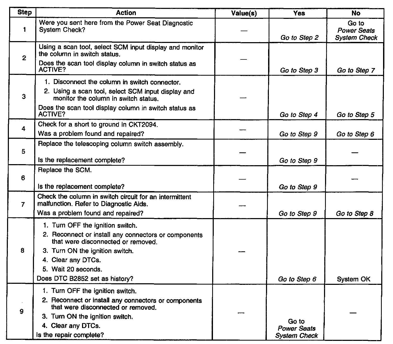 ^ Activate the steering column in switch numerous times while monitoring the status on the scan tool to see if it sticks intermittently.
