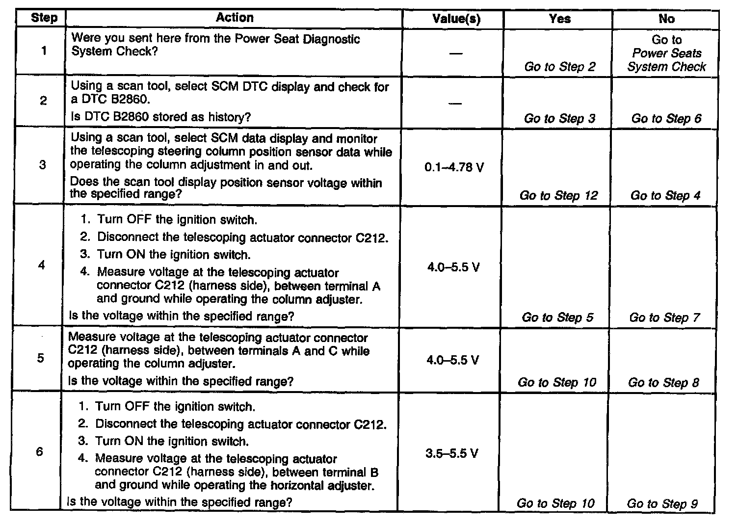 DTC B2860 Column Position Sensor Failure (Part 2 Of 2):
