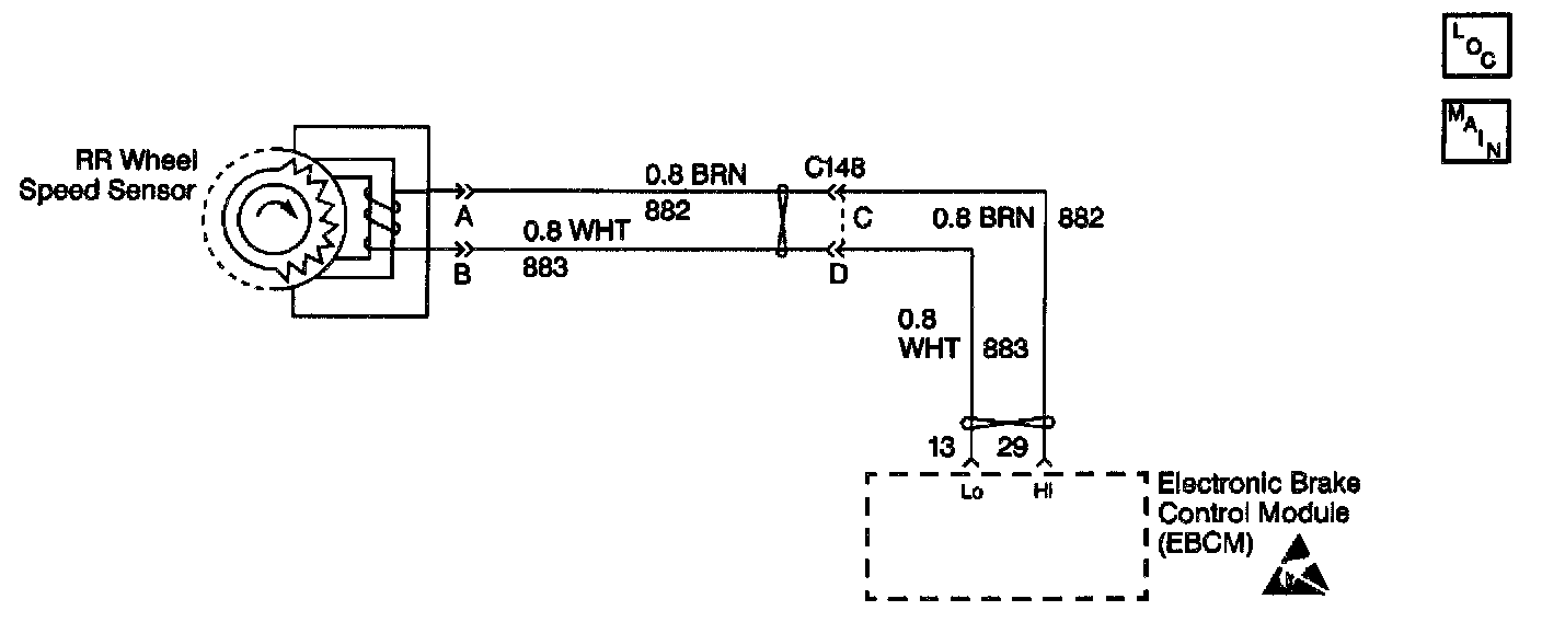 The speed sensor used on this vehicle is a single point magnetic pickup. This sensor produces an AC signal that the Electronic Brake and Traction Control Module (EBTCM) uses the frequency from to calculate the wheel speed.
