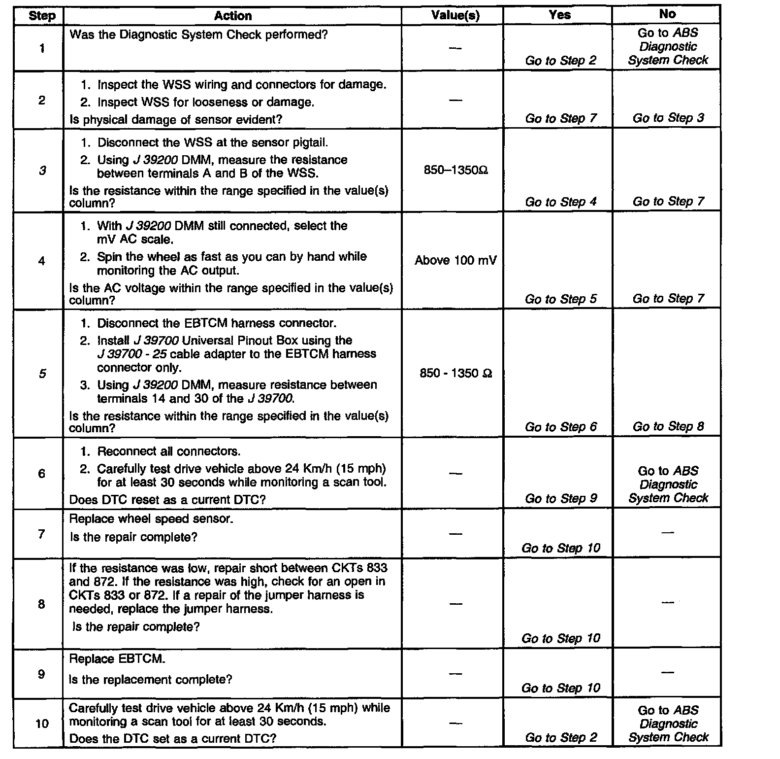 3. Checks the resistance of the Wheel Speed Sensor (WSS).