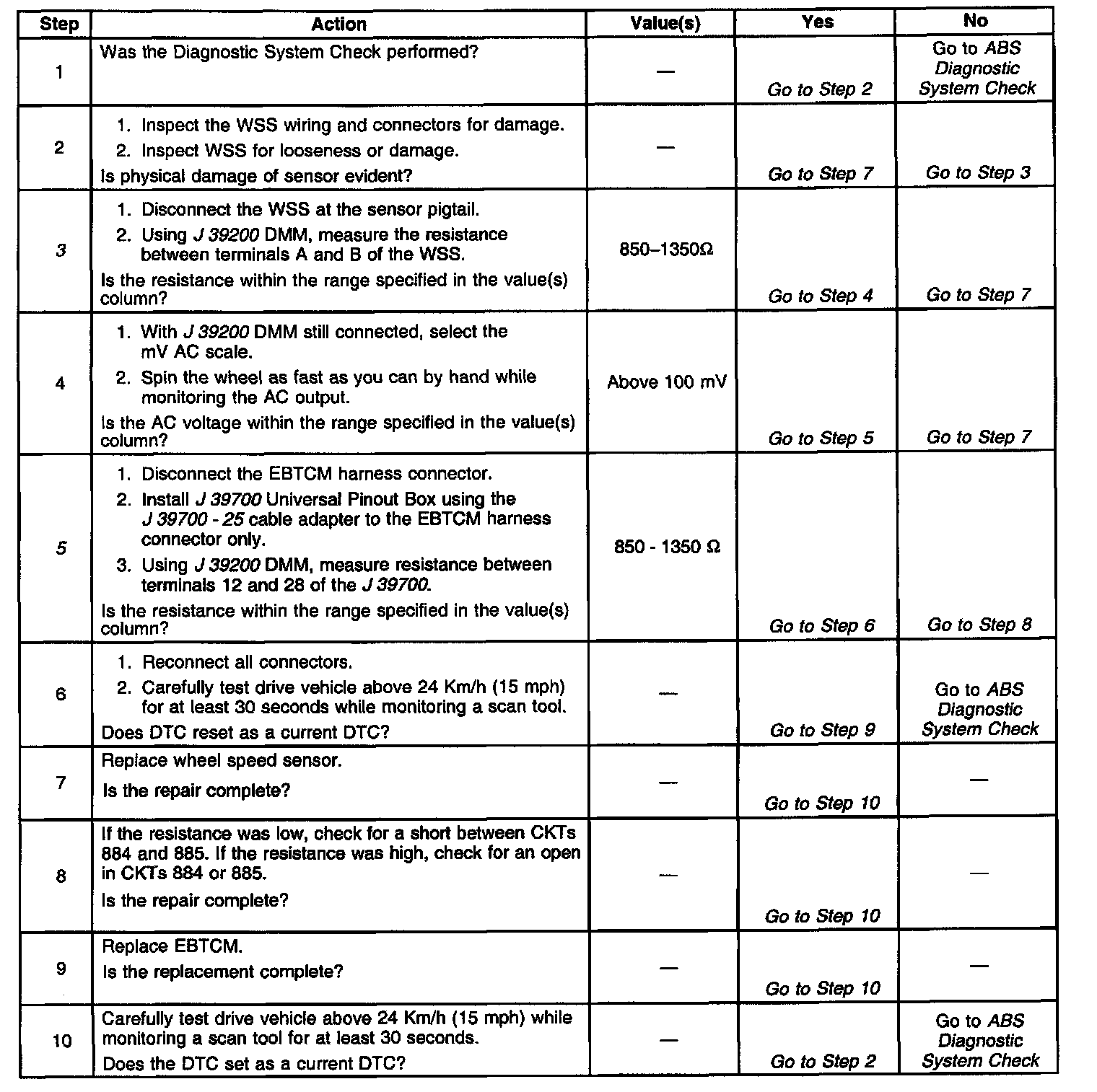 3. Checks the resistance of the Wheel Speed Sensor (WSS).