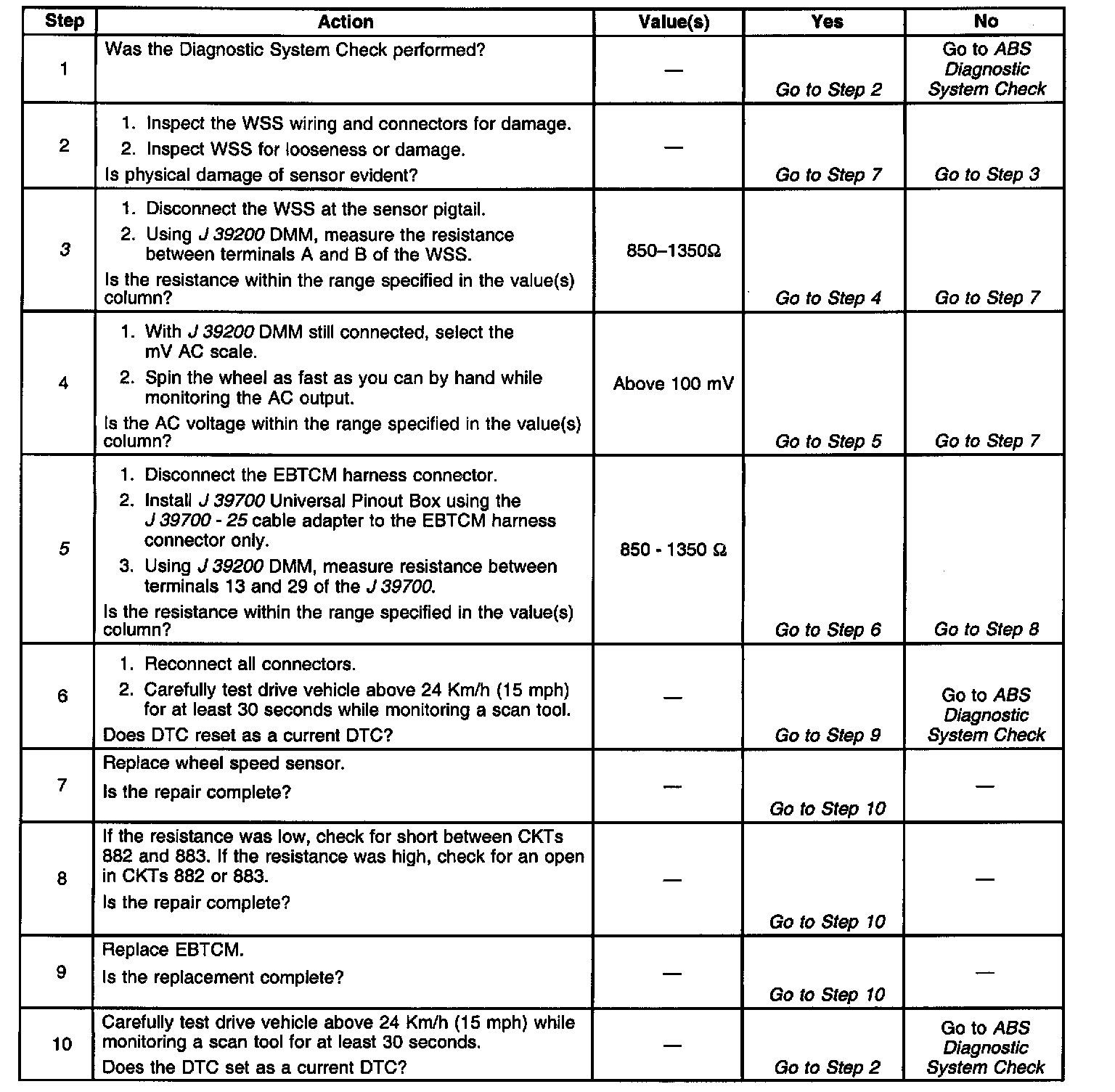 3. Checks the resistance of the Wheel Speed Sensor (WSS).