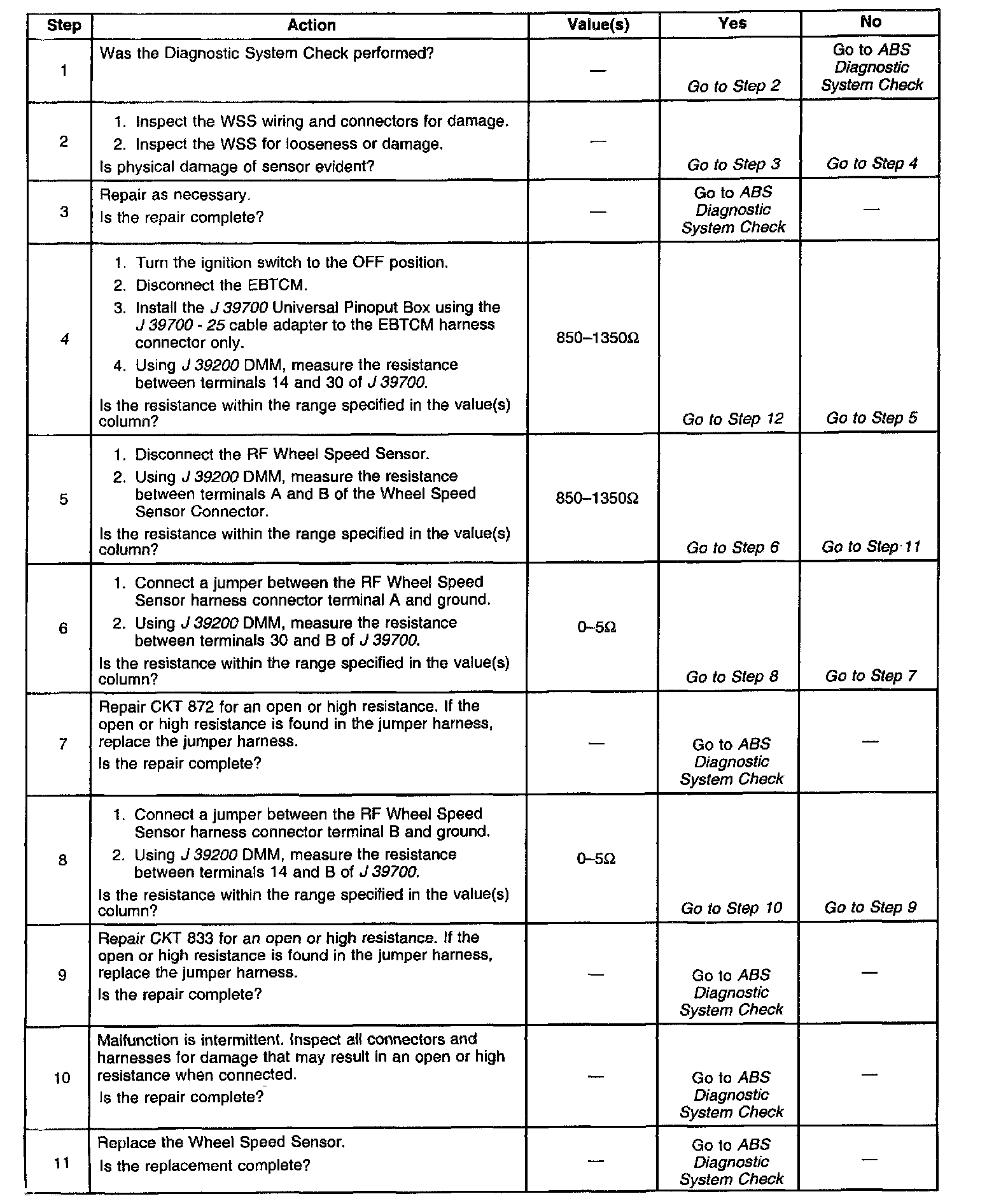 4. Checks for an open in the Wheel Speed Sensor (WSS) or WSS CKT.