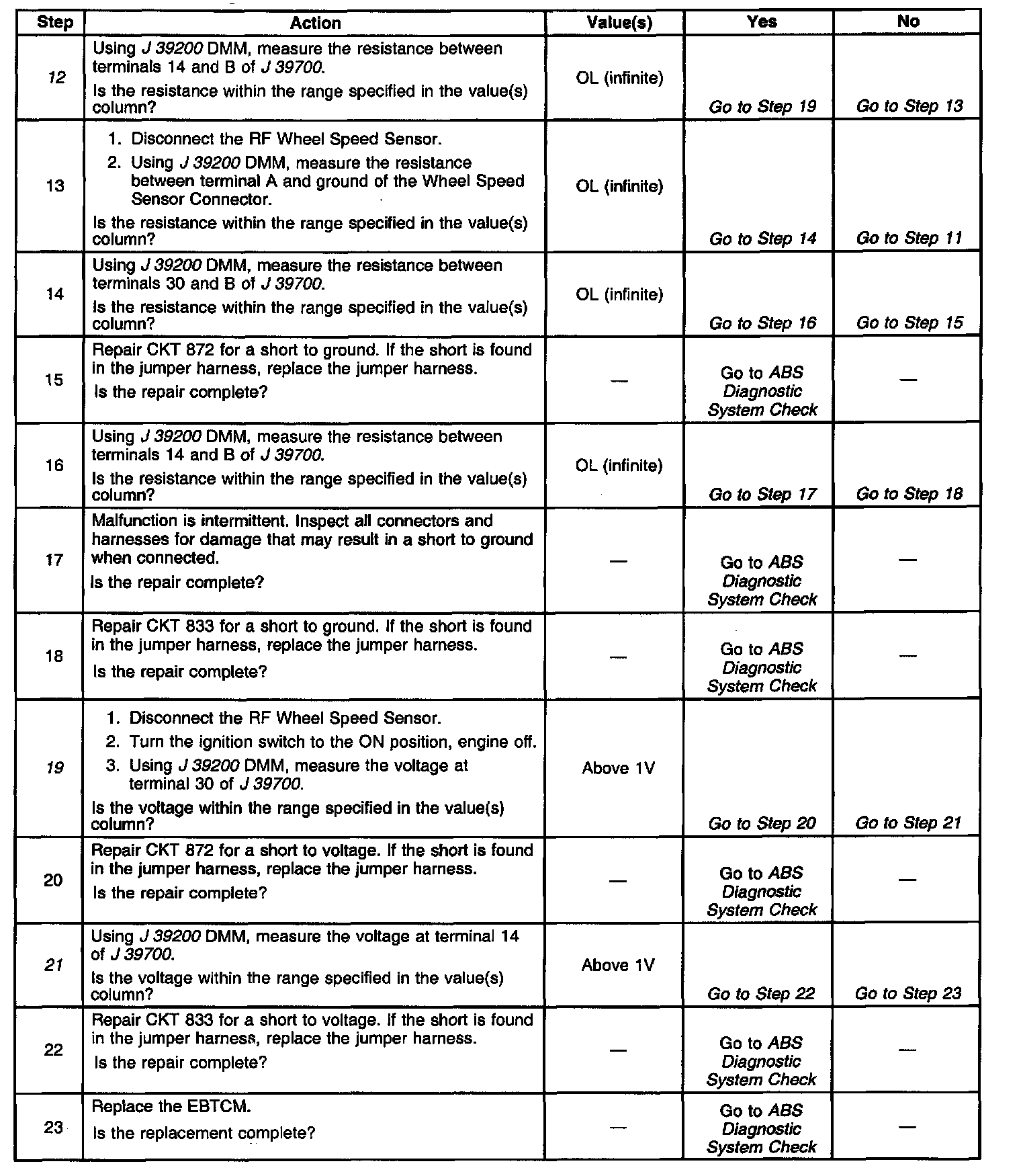 DTC C1233 RF WHEEL SPEED CIRCUIT OPEN OR SHORTED