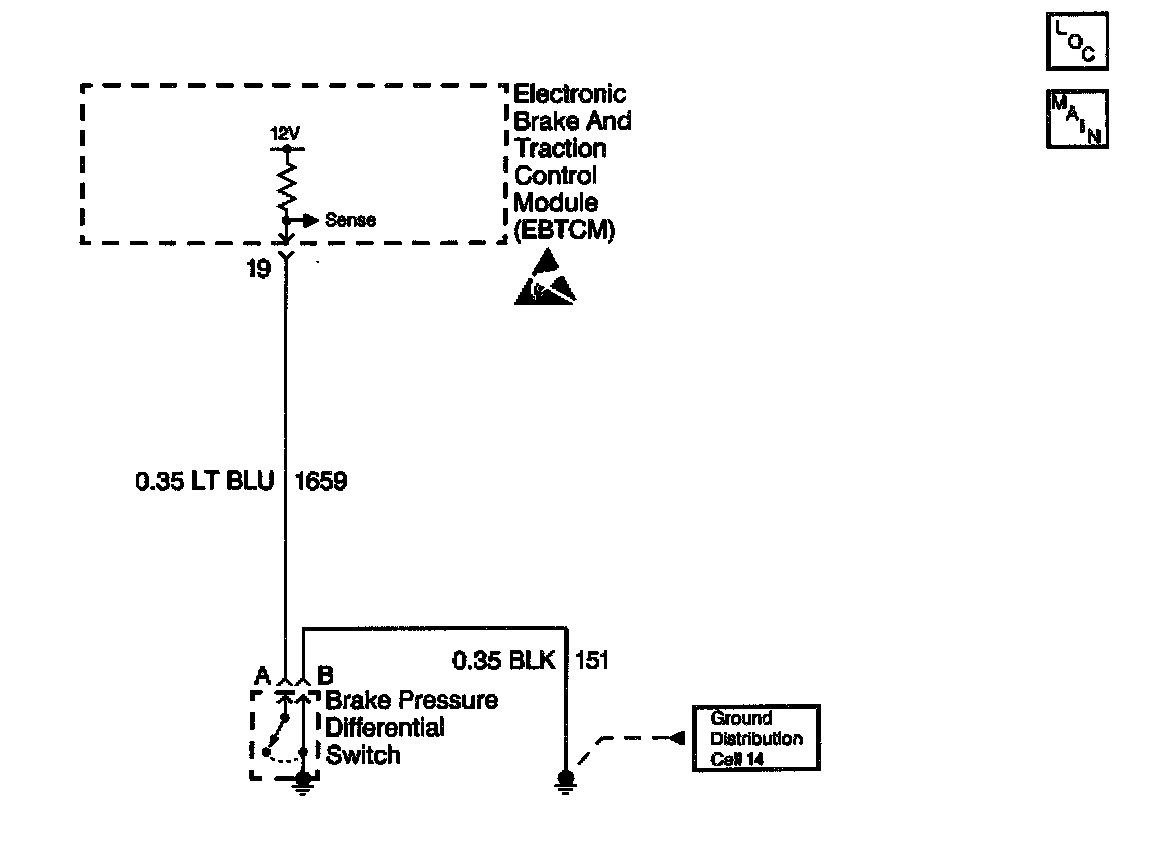 Diagnostic Trouble Code (DTC) C1247 can be set anytime, if the Electronic Brake and Traction Control Module (EBTCM) detects the Brake Pressure Differential Switch has been grounded due to loss of brake pressure or a short to ground.