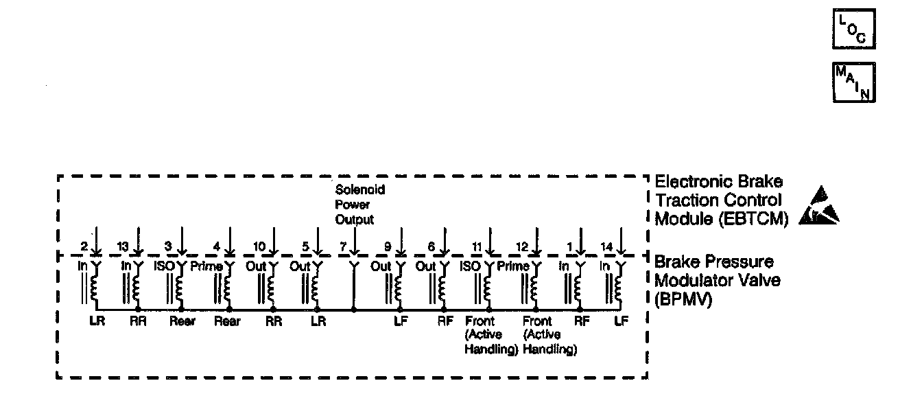 ^ Make sure the integrity of the connection between the Electronic Brake and Traction Control Module (EBTCM) and the Brake Pressure Modulator Valve (BPMV) is secure, tight, and free from corrosion.