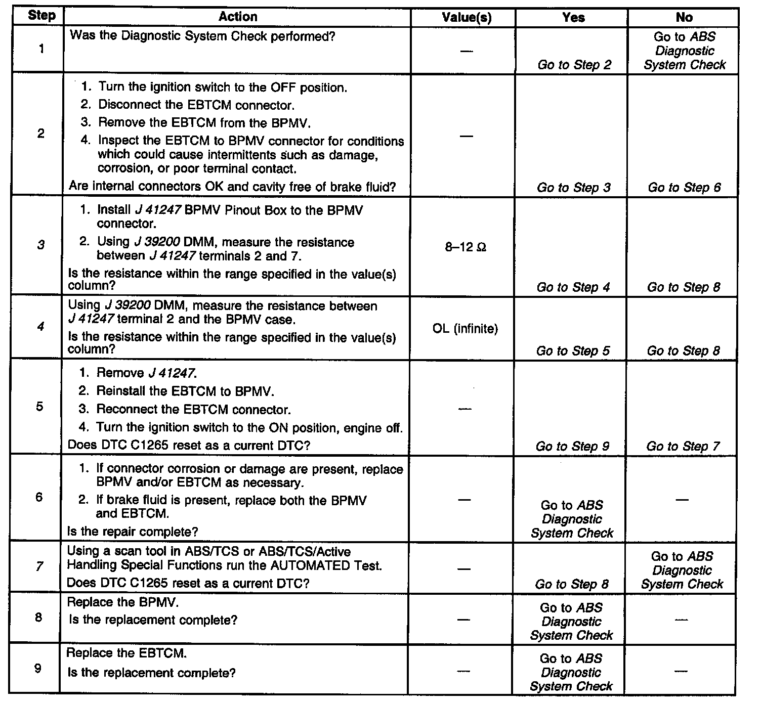 4. Checks for a short to ground in the Brake Pressure Modulator Valve (BPMV).