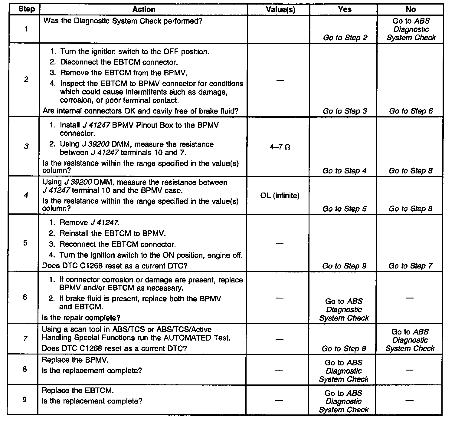 4. Checks for a short to ground in the Brake Pressure Modulator Valve (BPMV).