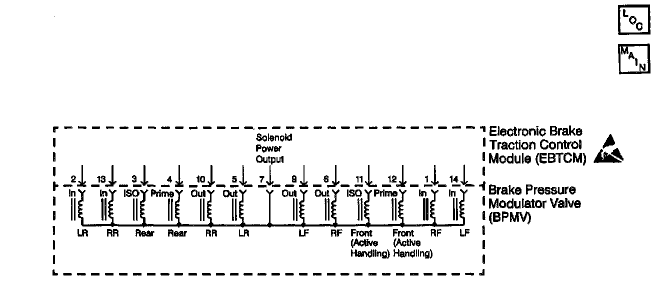 The Master Cylinder Isolation valve solenoid circuits are supplied with battery power when the ignition is in the ON position. The Electronic Brake and Traction Control Module (EBTCM) controls the valve functions by grounding the circuit when necessary.