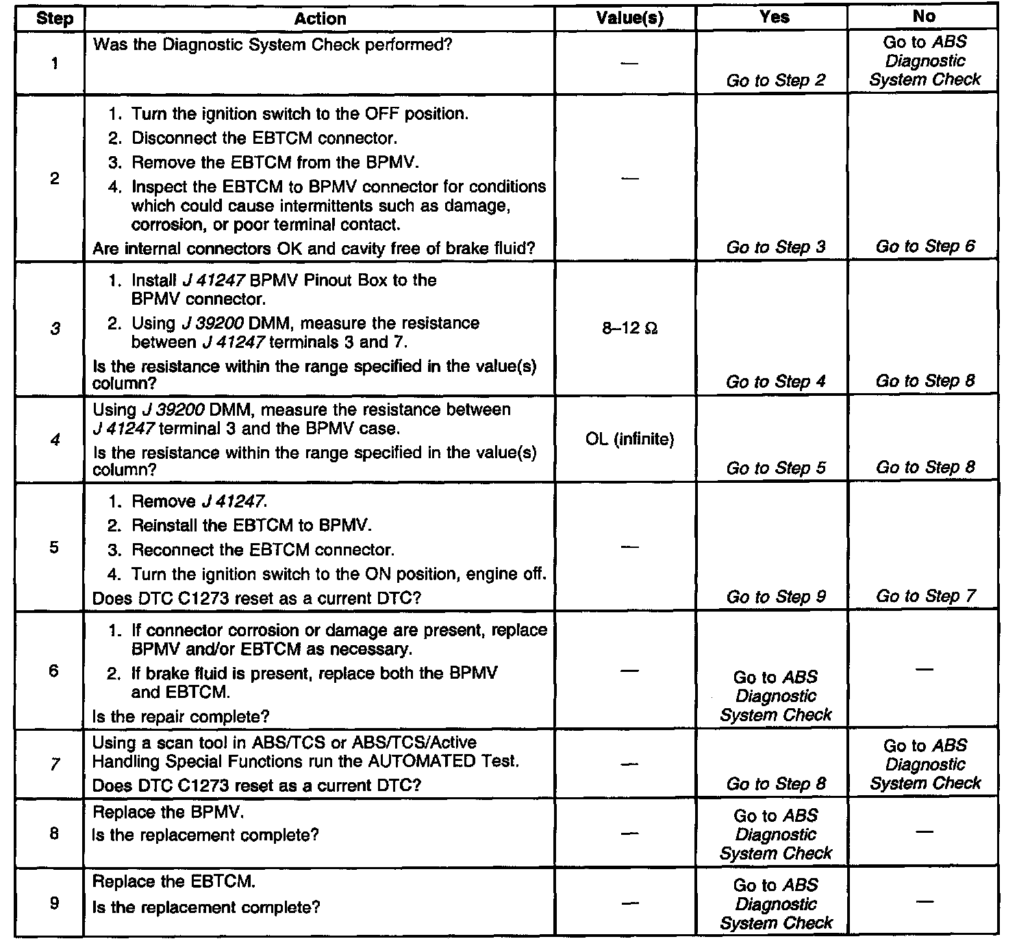 4. Checks for a short to ground in the Brake Pressure Modulator Valve (BPMV).