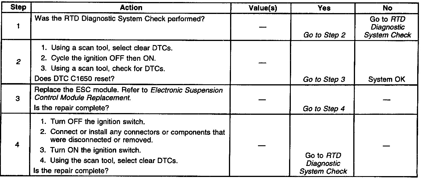 - Since DTC C1650 is an internal malfunction to the ESC module, there is no repair procedure and the ESC module must be replaced.