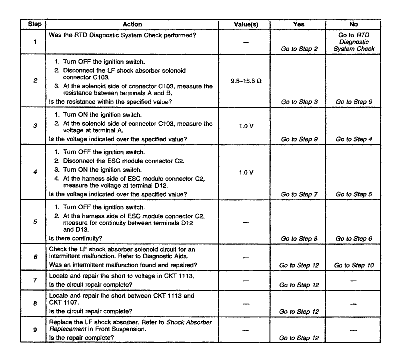 - The ESC module no longer detects a high voltage level (short to voltage) on the LF solenoid drive circuit during a diagnostic test.