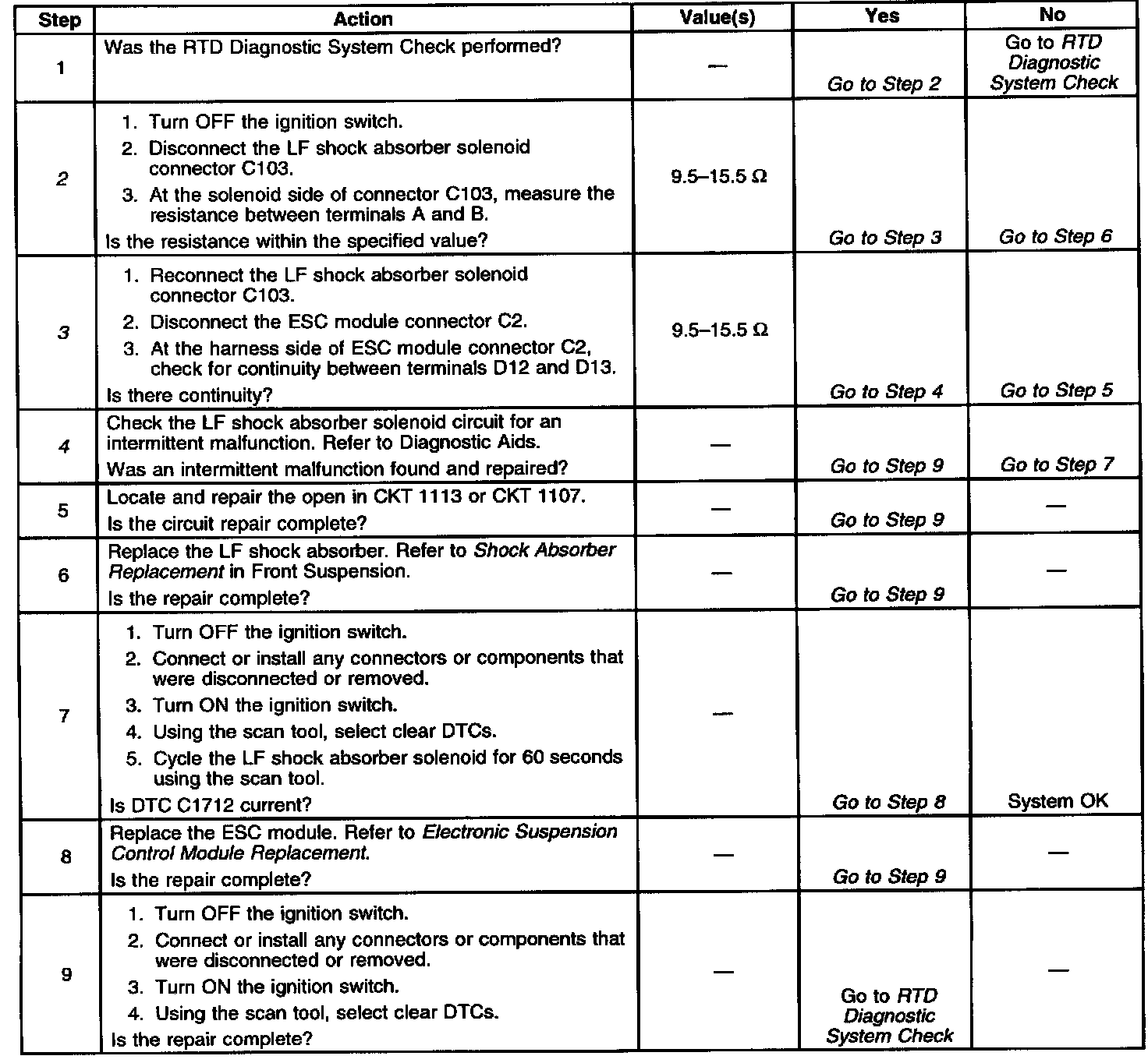 DTC C1712 LF Shock Absorber Solenoid Circuit