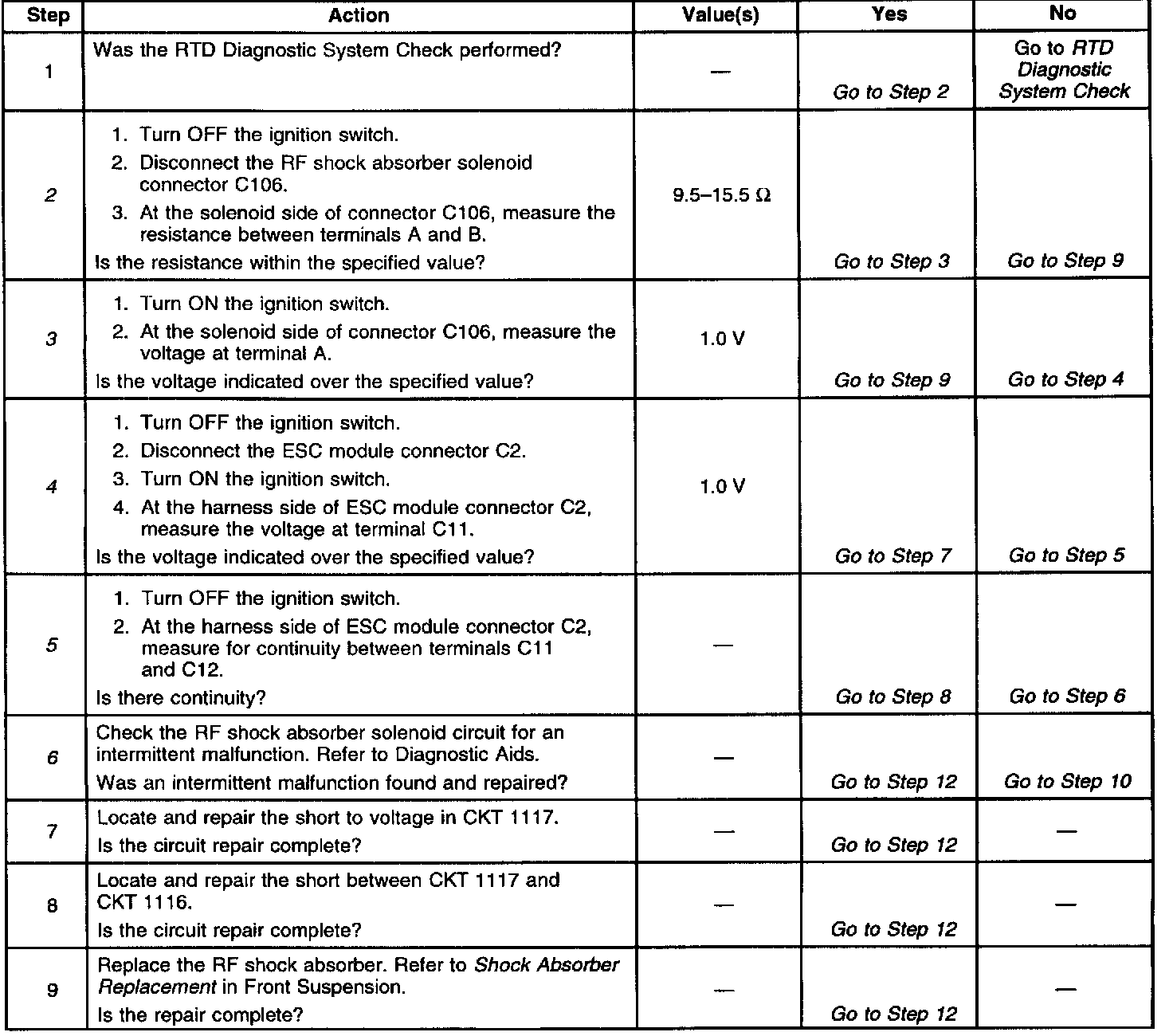 - There is a RF shock absorber solenoid low resistance, internal short, or short to voltage condition.