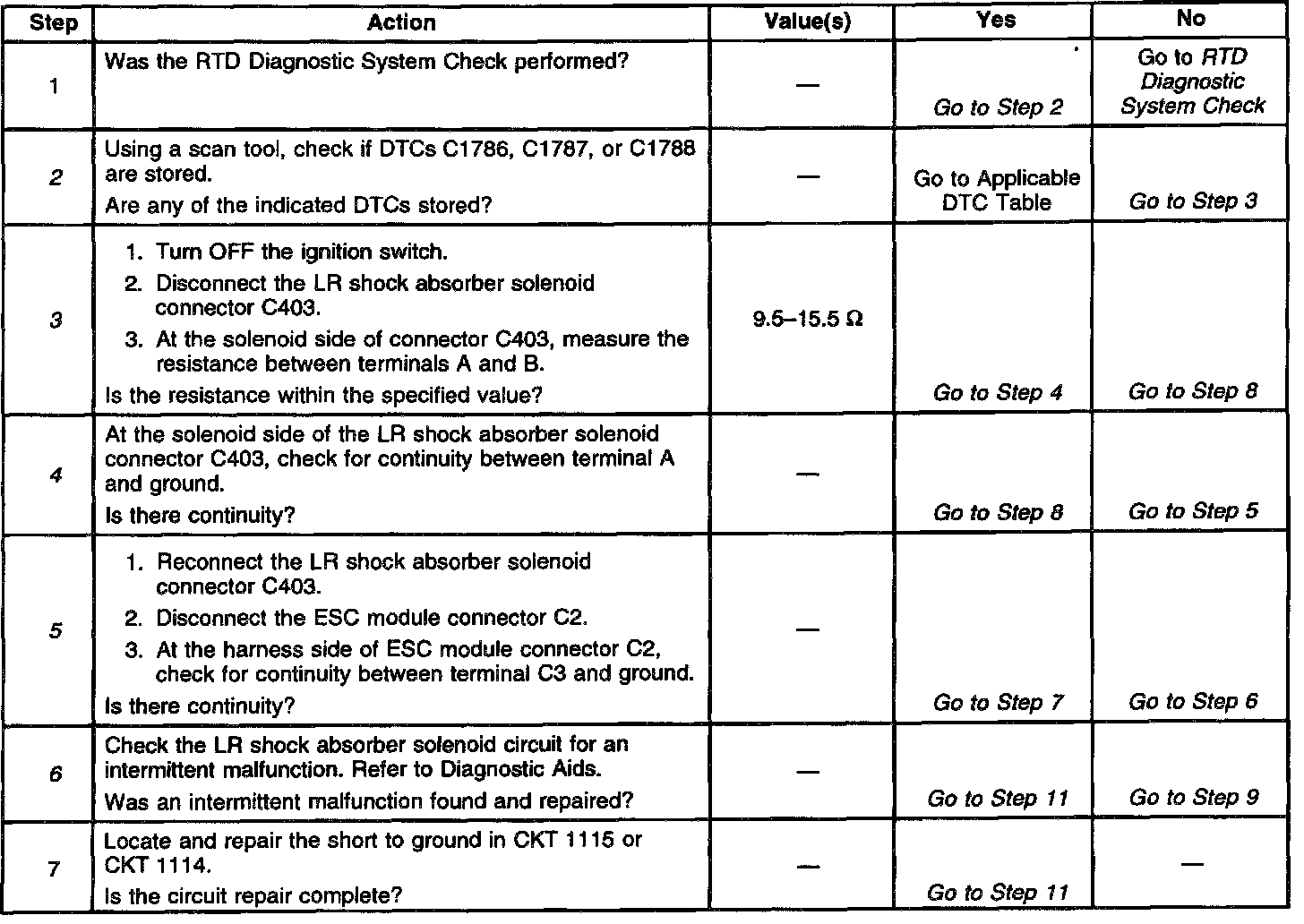 - The RTD relay provides supply voltage to all four shock absorber solenoids; therefore, multiple shock absorber solenoid (open or short to ground) DTCs may also be stored along with a DTC C1786. Always diagnose a DTC C1786 first before attempting to diagnose multiple shock absorber solenoid DTCs.