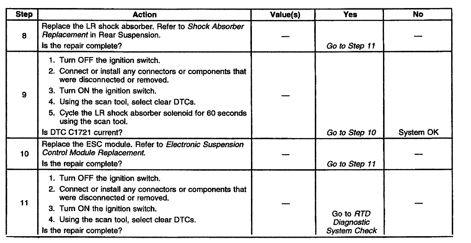 DTC C1721 LR Shock Absorber Solenoid Circuit