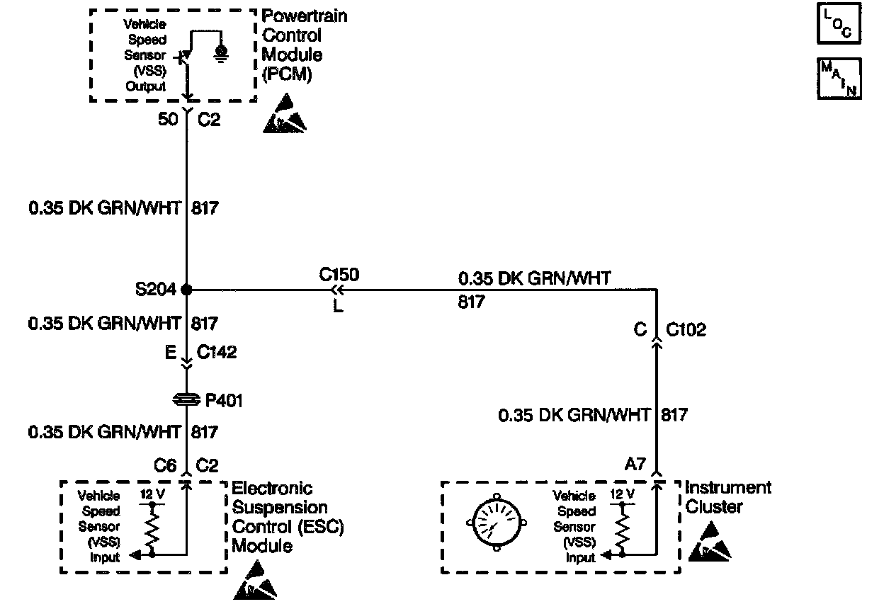 - The ESC module receives VSS data from the PCM on CKT 817 that is less than 5 km/inch (3 mph).