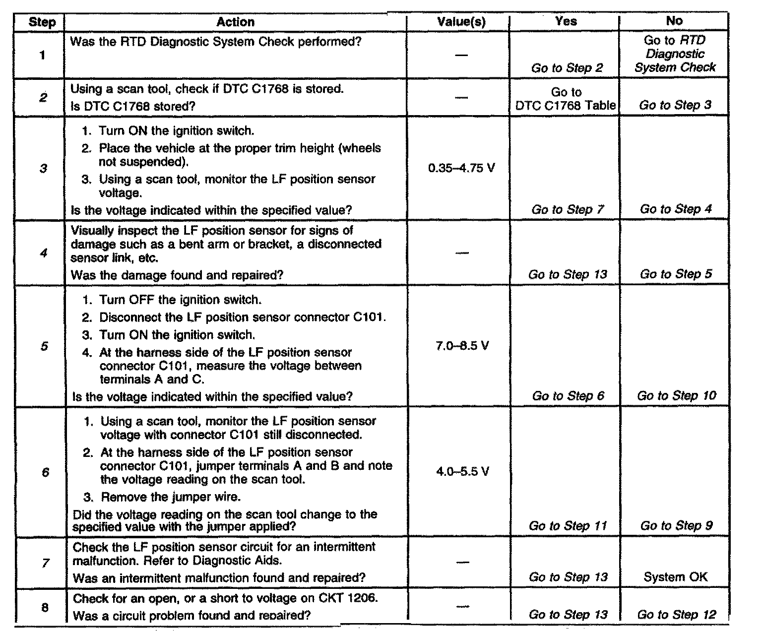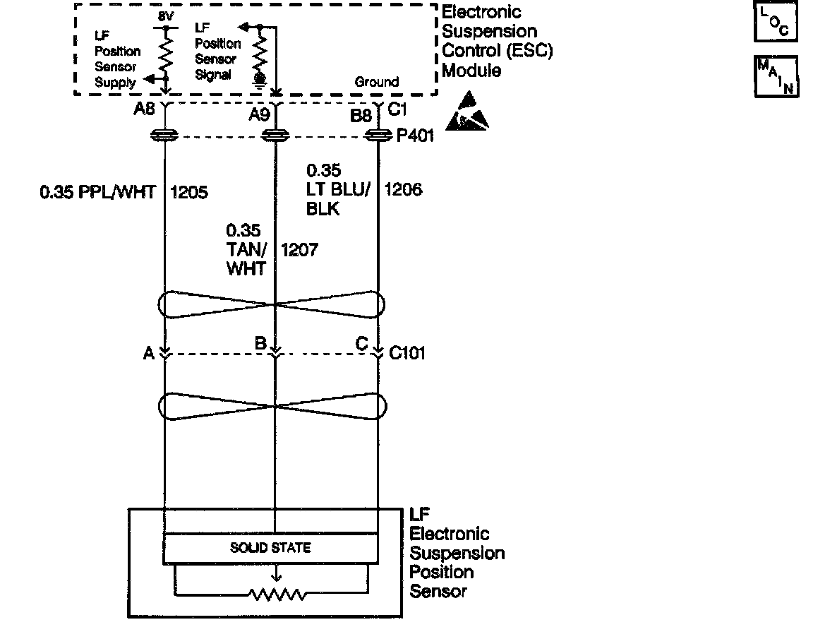 - When using a scan tool in order to read position sensor voltage, always make sure the vehicle is sitting with the full vehicle weight on its wheels. Measuring position sensor voltage with the vehicle raised and the wheels hanging may lead to incorrect diagnosis.