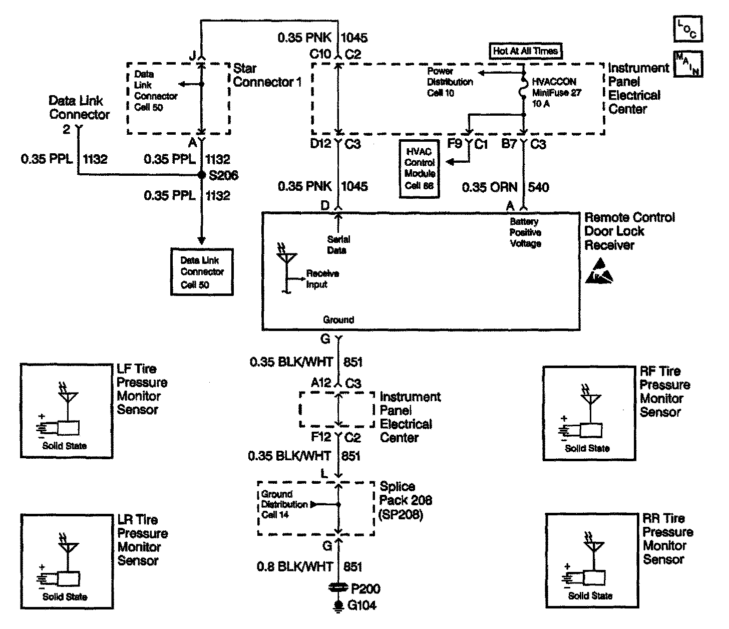 - If there is an open in the serial data line to the receiver, the IPC will display XXX kPa (XX psi) for all tire pressure values and the SERVICE TIRE WARN SYS message.