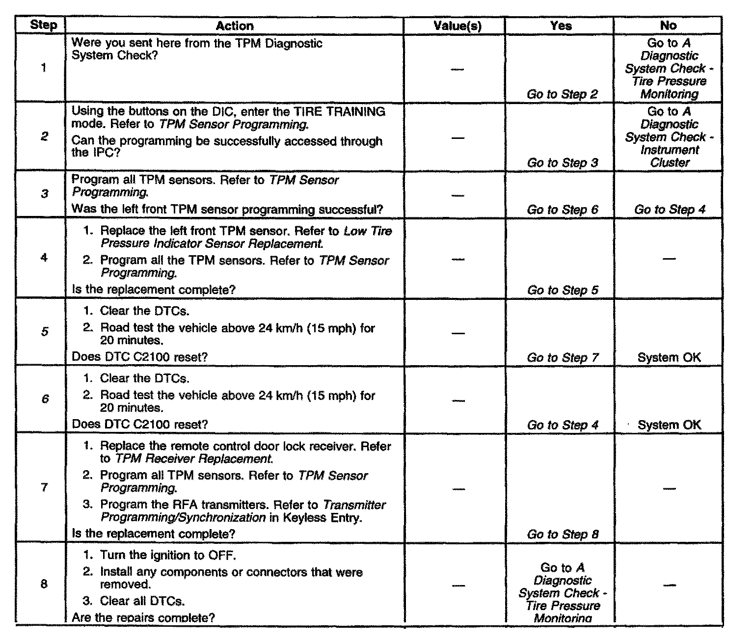 - Clear the receiver diagnostic memory before road testing the vehicle whenever a TPM sensor is replaced in order to avoid reading the original DTC stored in the memory.